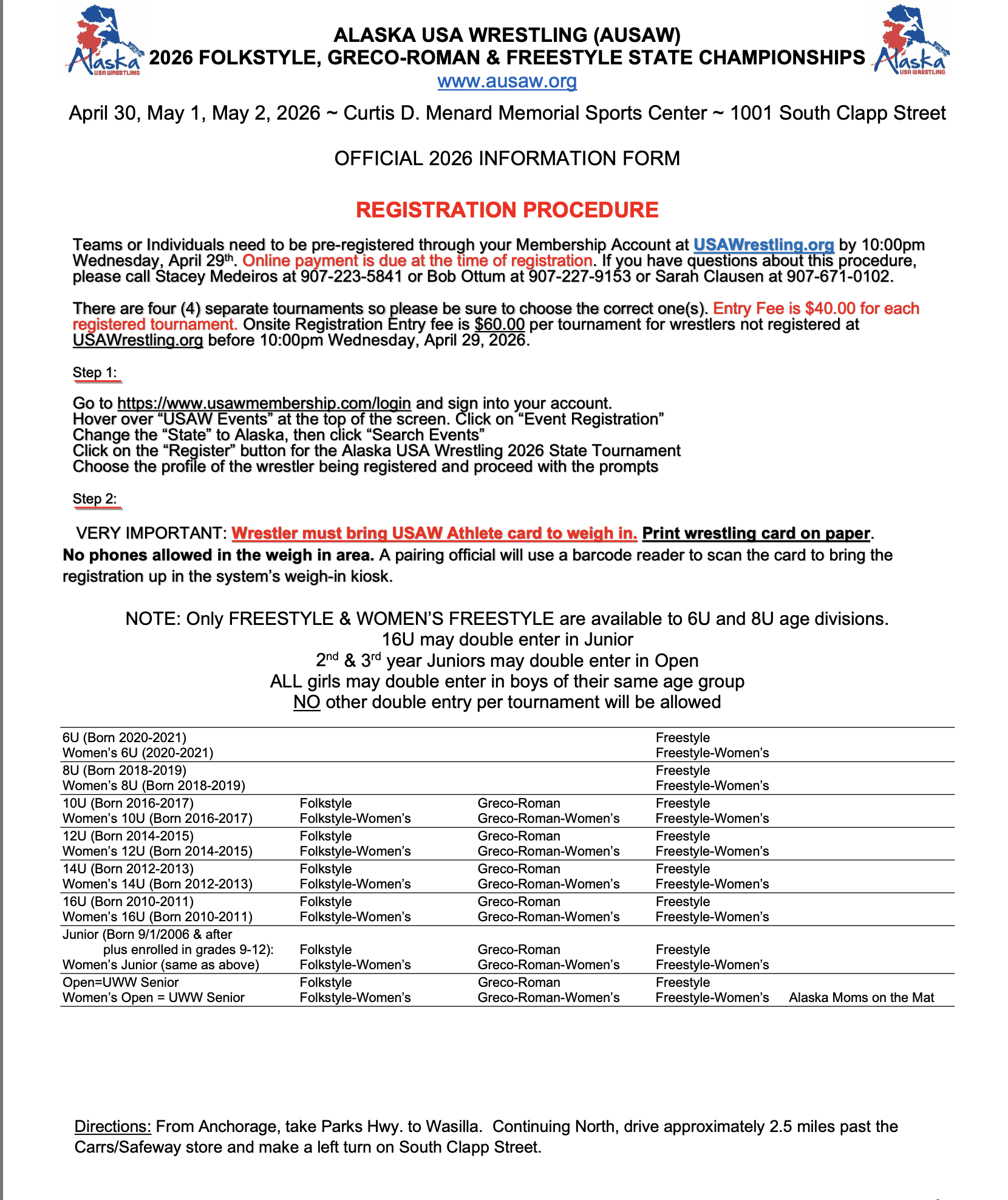 Registration is available for the AUSAW tournament: Kenai River Rumble, hosted by Soldotna @ Soldotna Field House.